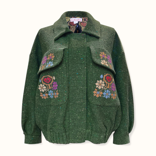 Quick view Jacket "STORK" wool Price $1,046.03 The pattern was inspired by Belarusian weaving. Design and production: KOKOSHA. Material: wool 100%, lining - silk 100%. Sizes: S, M....