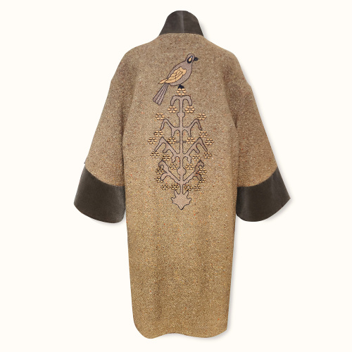 The embroidery and print of the kimono is based on the applied arts of Armenia.