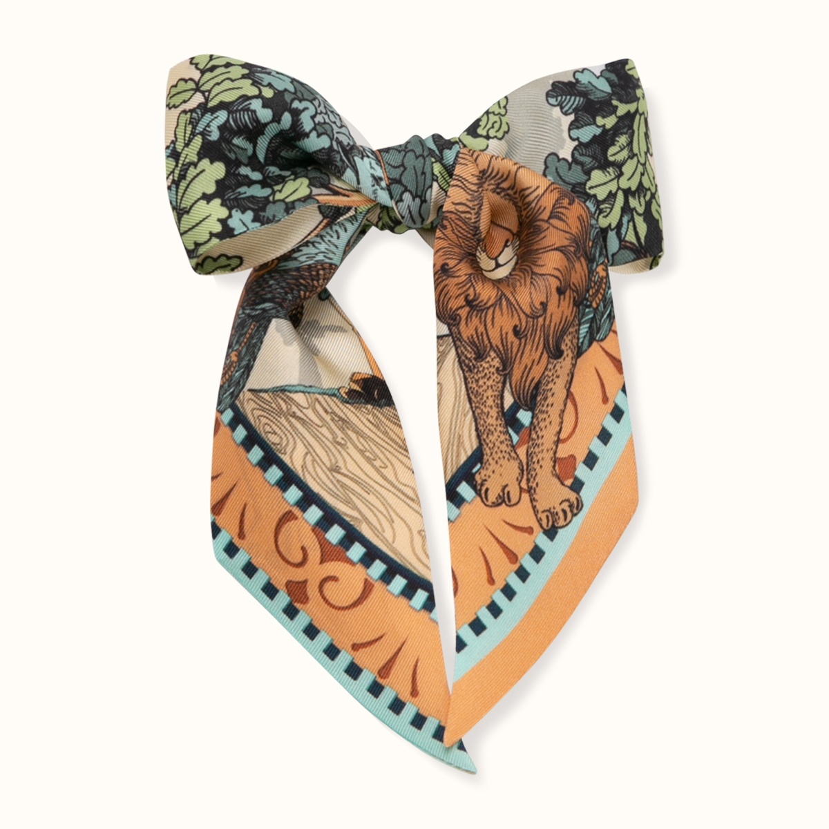 Scarf "FROM THE WOOD" silk 90х90 on a dark background