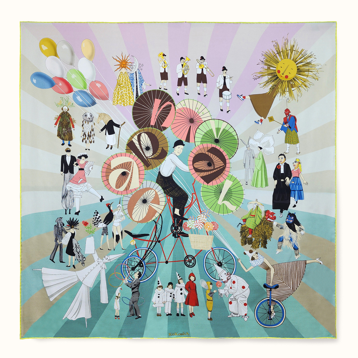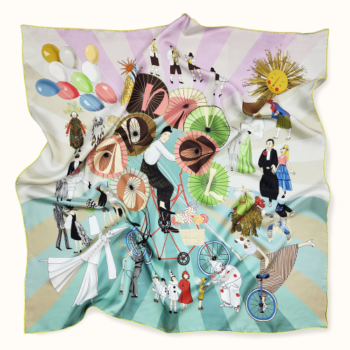 Scarf "CARNIVAL" silk 90x90 on a pink background