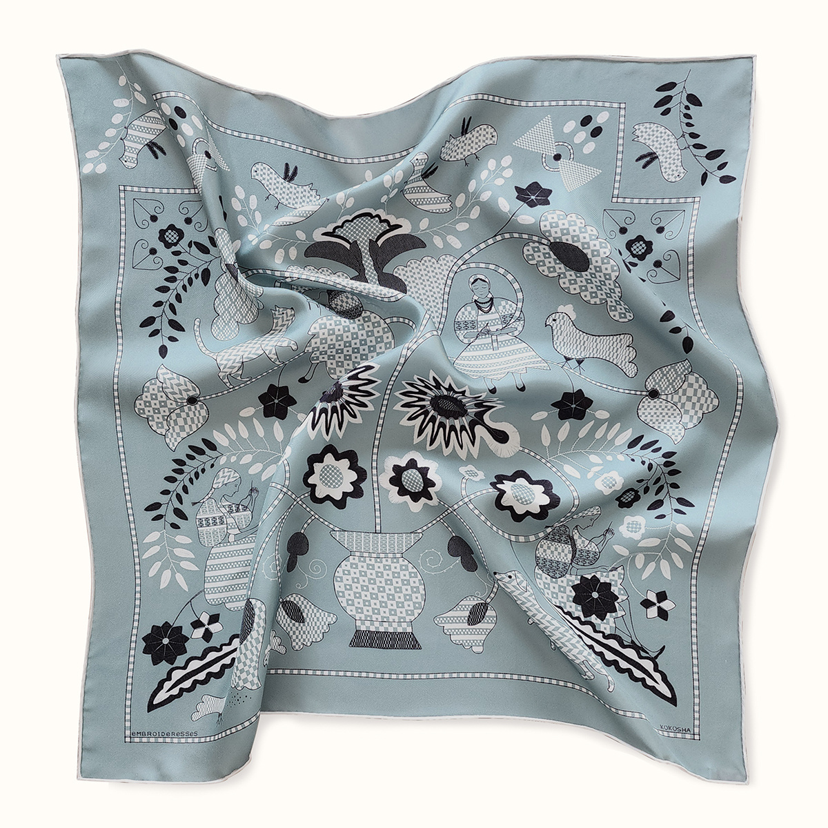Scarf "EMBROIDERESSES" silk 65x65