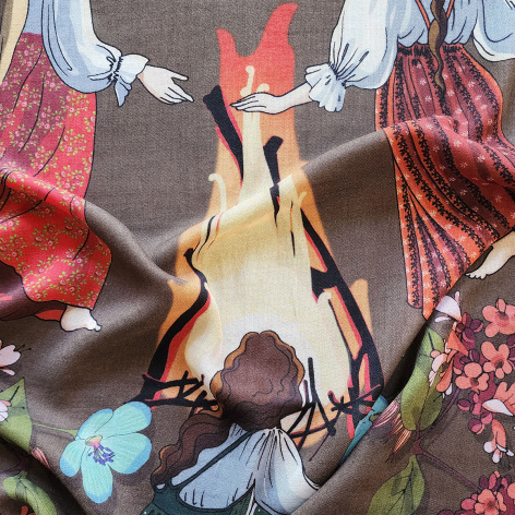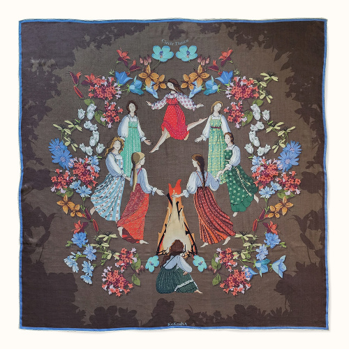 Design of shawl is made on the subject of rituals and celebrations on the night of Ivan Kupala.