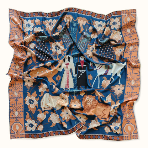These types of Pardagi inspired us to create the "Wedding" kerchief. The patterns that decorate the carpets are reminiscent of the paintings by Niko Pirosmani. About a hundred of such valuable skilfully-made Pardagi are on display in the House-Museum of Niko Pirosmani in the village of Mirzaani. There is a collection of these carpets in villages near Kiziki and in Mirzaani itself. They are truly a sheer delight — although simplistic and naive, they still convey the inner strength typical of authentic pieces of folk art.